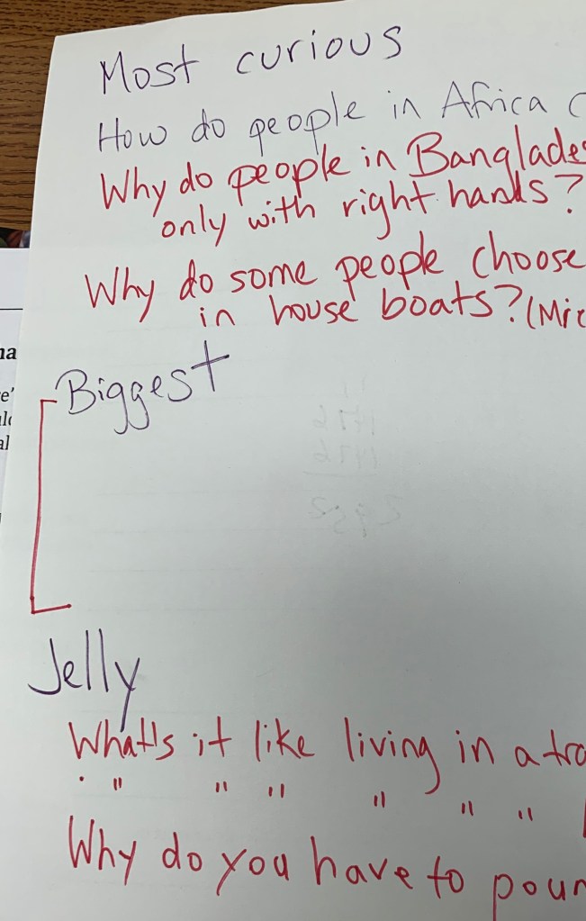 If there aren’t any “big” questions on there, I’ll have to figure out if it’s because kids weren’t giving their full effort, because they’re not connecting deeply with the reading, or because I need to do some teaching on what big questions actually are, or how to ask them.