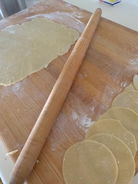 So there’s the dough to make. The filling to prepare. And then each round of dough has to be rolled and cut out. Each dollop of filling has to be centered on the dough. Each circle has to be folded into the triangle, pressed down and sealed with egg whites. Then, and only then, can it be baked.