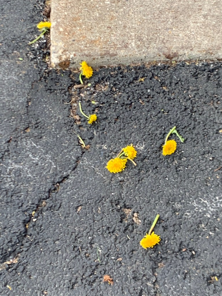 I think I might have written about “weeds” within the last few months. If I didn’t, I’ve thought about them. Flowers where someone doesn’t want them, is what I say. I think they’re beautiful, just like that kinder who wants to bring them in.