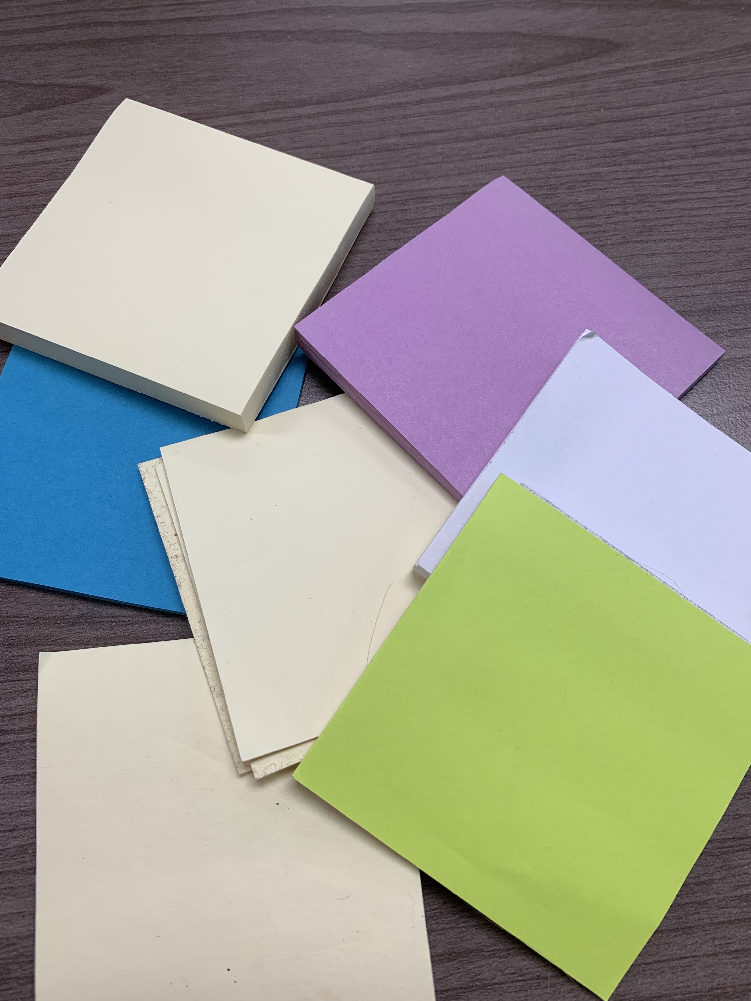 1. Sticky notes are truly versatile. I have used them to write comments on student drafts without having to mark up their paper. I have also had students write feedback comments on them for other students.