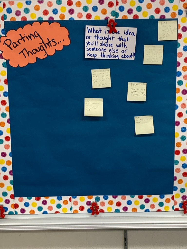 I’ve also given the option for students to write me a private note on the back of a sticky note, if they feel the desire. One student wrote, “I was thinking about for a long time how many friends will I make?” Hopefully many in here, buddy. Hopefully many.