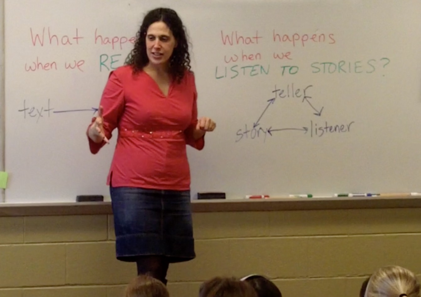 I made this recording when I was working with a group of kids, teaching them how to be storytellers. Some of you with eagle eyes might also catch the “story triangle” of teller-story-listener on the board behind me. Hey…if an idea works, roll with it.