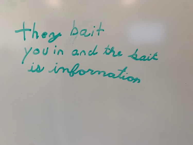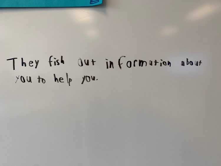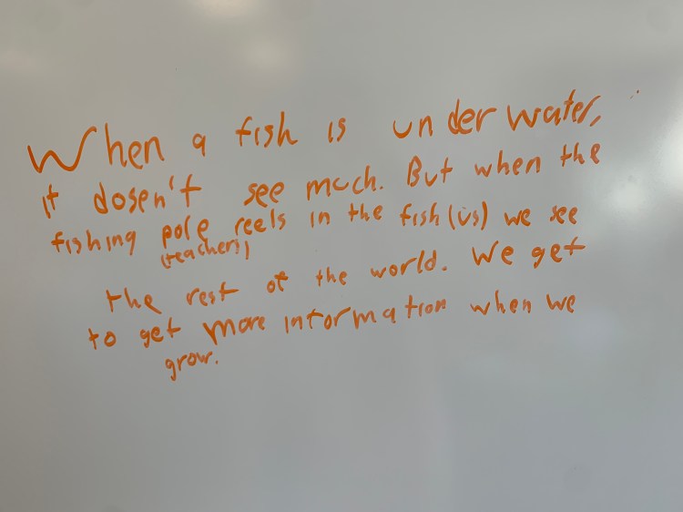 You know, you’re right, Fran. It’s funny – I teach this lesson each year, and sometimes it’s great. Sometimes it isn’t. Guess that extends that ol’ fishing metaphor, with all that patience and whatnot. I even did this same lesson with my students at my other school. Also had some pretty snappy ideas (though they weren’t caught on the whiteboard).