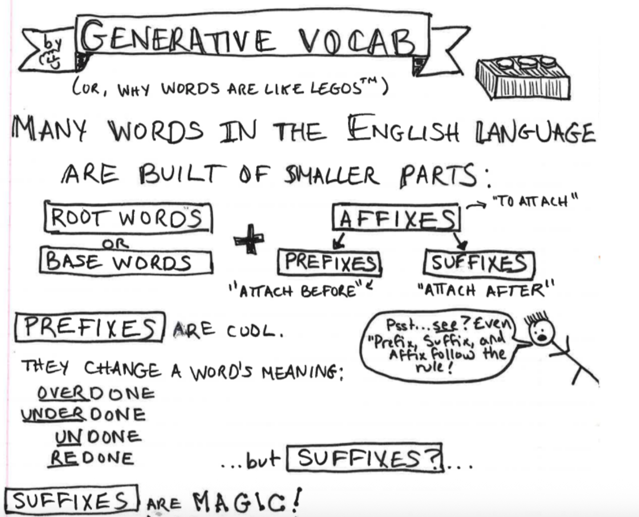 This morning, I was listening to the Two Writing Teachers podcast as part of my Sunday routine. I’m partial to the “Tip for Tomorrow” episodes, as they’re great for thinking about simple ways to “level up” my teaching. Melanie’s “tip for tomorrow” episode featured a discussion about morphology (hey, kids! that’s a fancy way of talking about word structure).