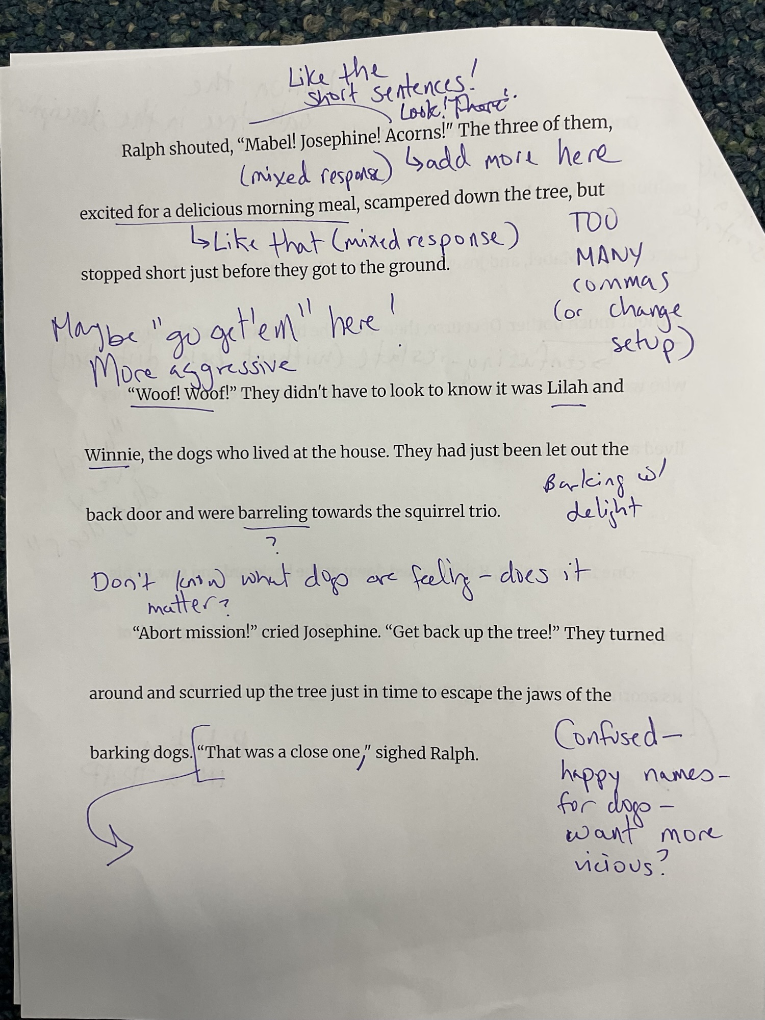 Spoiler alert: the kids were not shy in their questions and suggestions. I’ll publish the revised version in the coming days.